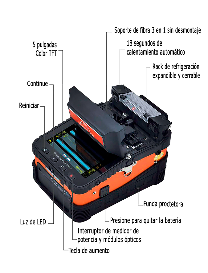 La fusionadora es una herramienta esencial en la instalación y mantenimiento de redes de fibra óptica. Su función principal es unir los extremos de las fibras ópticas de manera más precisa y confiable, creando una conexión continua que permite una transmisión de datos eficiente y sin pérdidas.